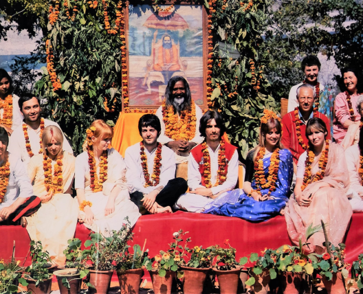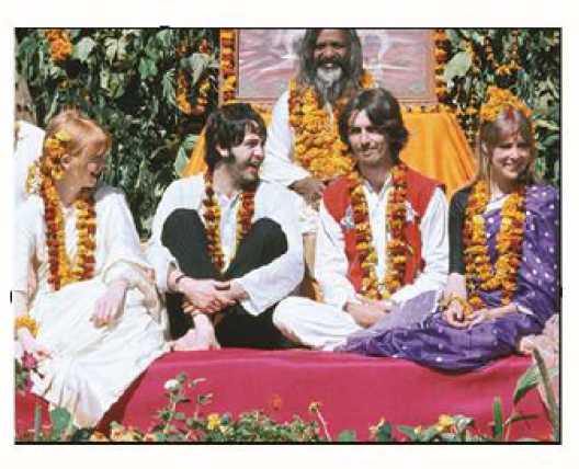 Rishikesh India, 1968. Donovan’s friends, Gypsy Dave and his sweetheart, Yvonne, came to the ashram for a few days to visit Donovan. John and Paul were just finishing playing and we all headed off for dinner.