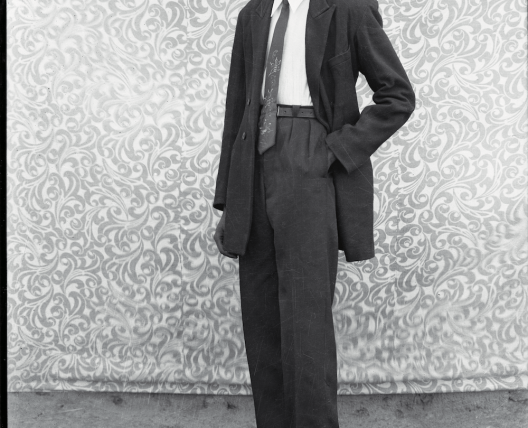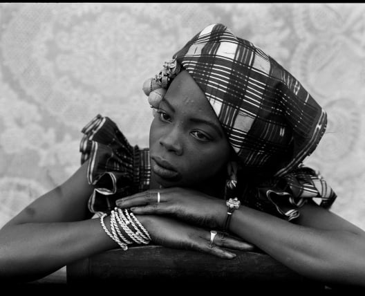 Born circa 1921, Seydou Keïta lived in Bamako, Mali, where from 1948 through the 1950s he ran a successful portrait studio taking pictures of local individuals and families. Essentially self-taught, Keïta developed his trademark style photographing his sitters in daylight against a variety of backdrops from plain drapes to vibrant African pattern. No matter the situation Keïta had a natural gift and a refined aesthetic that made his portraits distinctive works of art. Technically, his negatives were perfectly exposed and focused. More importantly however, his pictures captured the spirit of his sitters in the most generous manner and in naturally captivating compositions.