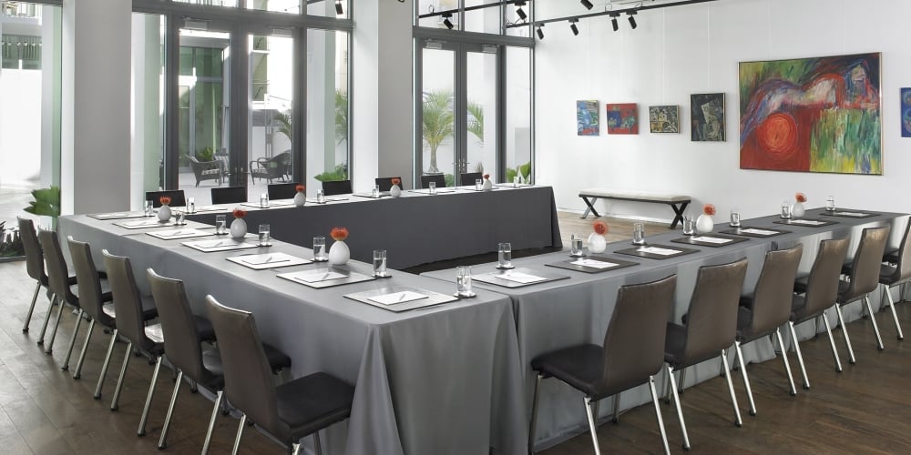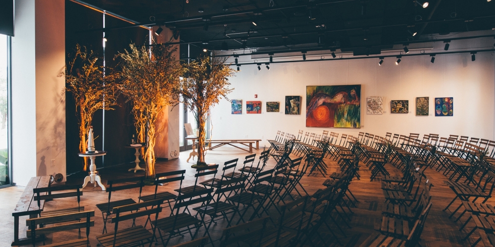 A large, airy, ground-floor multi-use meeting and event space, the Gallery is a blank slate for your imagination, with a soaring ceiling, wide-plank wooden floors, and the feeling of a downtown loft. Flooded with natural light from floor-to-ceiling windows on both sides, it connects to both the Atrium and the Carlton Room, making it an ideal space for parties that need the extra space. Complete with Audio / Visual capabilities built-in, the Gallery is ready to host your presentation, meeting, reception, seated dinner, and more.