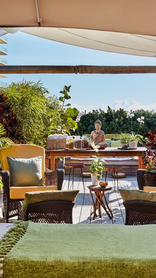 The Betsy is the home to the only outdoor spa in Miami. It’s located on the Ocean Front Deck, three stories above the ocean. Designed with wood, stone, bamboo and other natural fibers, retractable sails offer shelter from sun and rain, and there’s a bar close by to mix and serve your favorite drink. We create our own signature therapies that mirror our commitment to and interest in global arts and culture – and even our Spa brochure quotes from the world’s great writers and thinkers. Each therapy begins with a trip to our Aromatherapy Bar, where we will guide you through a selection of natural elements, based upon your own unique sensibilities and state of being.