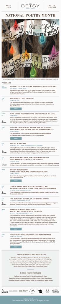 The Betsy, in partnership with O, Miami, will be hosting poetry events throughout the month of April.