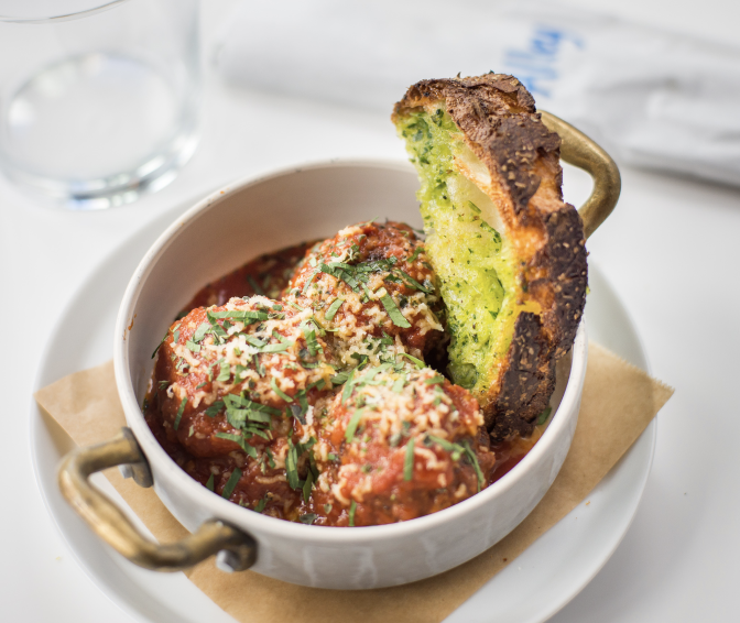 Before you dig in to the pizzas though, you’re gonna want to try their calamari fritti with zucchini and calabrian chili aioli for dipping or their fresh and light whipped ricotta with garlic and rosemary focaccia. And I saved the best for last…the perfectly prepared veal and mortadella meatballs in a tomato pomodoro. Seriously, take a bite of these and you’d swear there’s an Italian grandmother back in the kitchen keeping watch over a huge pot of them.